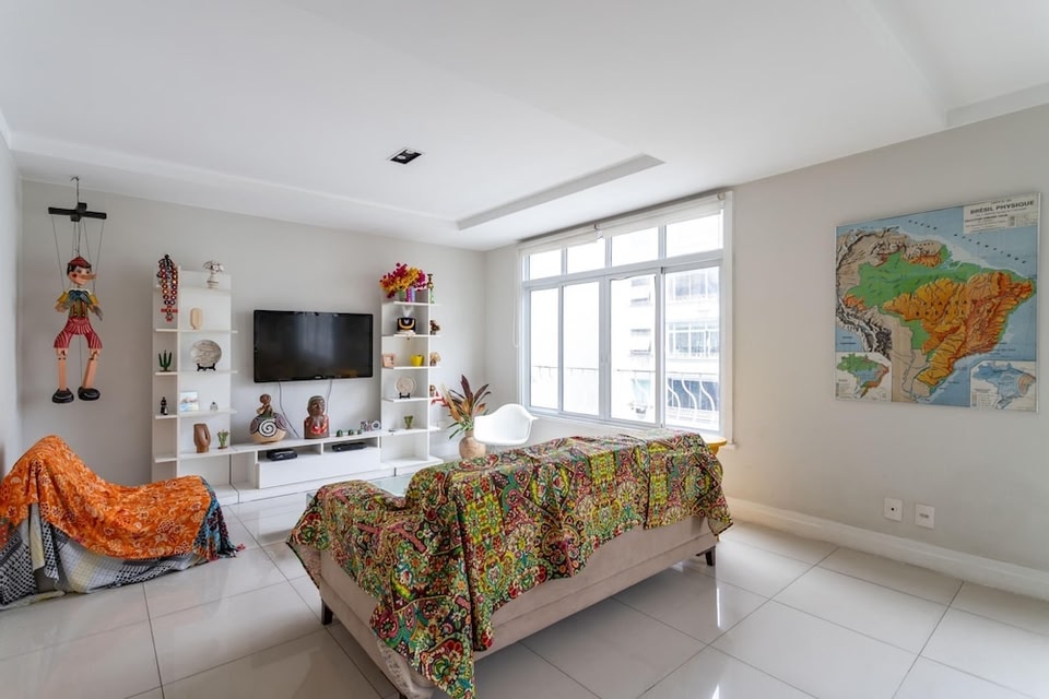 Copacabana, a neighborhood in Rio de Janeiro, is home to this apartment. Copacabana Fort and Christ the Redeemer are notable landmarks, and the area's natural beauty can be seen at Copacabana Beach and Ipanema Beach. Looking to enjoy an event or a game while in town? See what's going on at Maracanã Stadium, or consider a night out at Qualistage. Nestled in Rio de Janeiro, this 3-bedroom, 2-bathroom apartment brings it all within your reach. Fans of nature and the outdoors will love being 5 minutes by foot from Copacabana Beach and 13 minutes from Ipanema Beach. Your feet will make short work of the 3-minute walk to Avenida Atlantica or the 10-minute walk to Copacabana Fort. Check out other neighborhoods and see more of Rio de Janeiro by hopping on a metro at either Estação 1 Tram Station, a short 6-minute walk away, or Cantagalo Station, 8 minutes away. While you're here, you can enjoy all the comforts of home and more, including free WiFi, an elevator, and a wardrobe or closet. Other amenities include kitchenware and utensils and toilet paper.