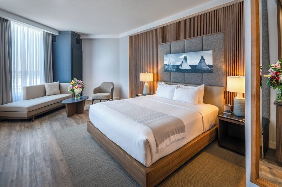 Featuring an on-site casino games room, this Calgary property offers an indoor pool and an outdoor hot tub. A flat-screen cable TV and iPod dock are provided in all guest rooms. Calgary Stampede is 16 minutes’ drive away.