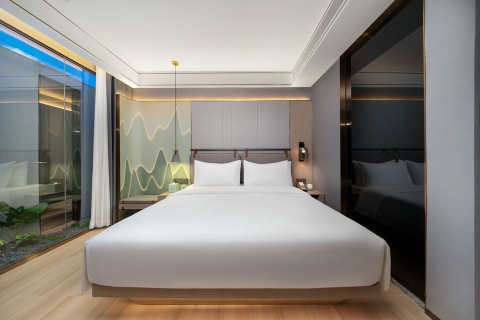 Shenzhen Bantian Huawei Mingzhu Garden Hotel, affiliated to Shenzhen Mingzhu Hotel Management Co., Ltd., is located at No.4004 Wuhe Avenue, Bantian, Longgang District, Shenzhen, at the intersection of Wuhe Avenue and Zhangheng Road. The hotel is close to Huawei Base and Foxconn Center, and the traffic around the hotel is convenient. The entrance of the hotel is Huawei Expressway, the bus stop of Huawei headquarters, only 1.2 kilometers away from Huawei Metro Station and Gangtou Metro Station, and only 1 kilometer away from Tianan Yungu Center, Longgang. At the same time, the hotel enjoys an independent parking lot, with over 100 parking spaces for hotel guests to park for free, which can meet your travel needs by car, bus or subway to any place such as the surrounding commercial offices and commercial complexes. There are 111 rooms in the hotel, which are equipped with restaurants, cafes, free gymnasiums and self-service laundry centers in the garden of the independent hotel. At the same time, there is a meeting room with a capacity of 30-50 people, which can meet customers' living needs such as catering and fitness during their stay in the hotel. The hotel rooms are mainly distributed to the 7th-8th floors of the building, all of which are professionally designed by designers. The rooms have beautiful and elegant indoor gardens for landscaping, all of which are smart home startup mode, comfortable and elegant accommodation environment, intelligent and modern life service, warm and considerate reception for guests, and the whole process runs through the hotel.