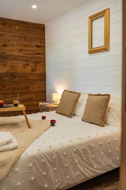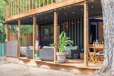 Featuring garden views, Ô Temps Des Pins provides accommodation with a terrace and a balcony, around 35 km from Joliette Metro Station. This lodge features a private pool, a garden and free private parking.