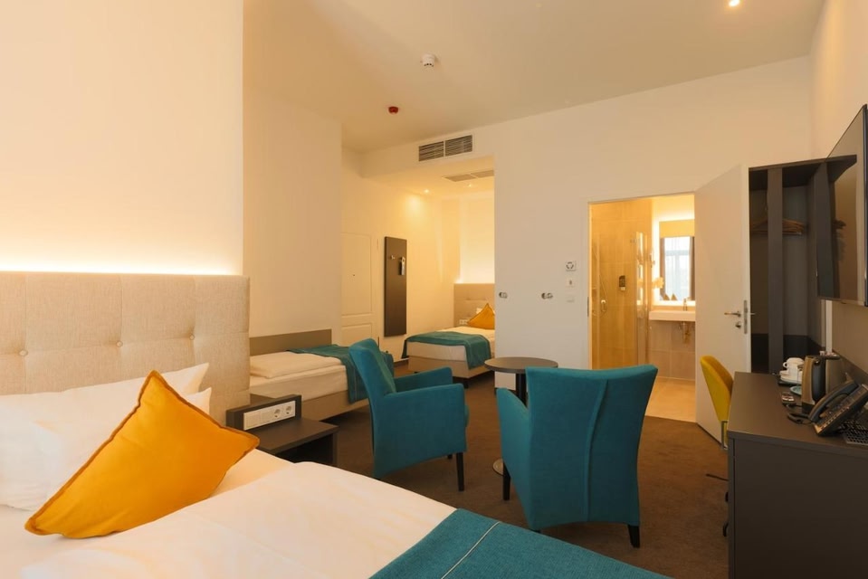 Fee for an extra bed: 25.00 EUR per night. The number of extra beds depends on the room category. You must take a look at the information about the size of the selected room.
