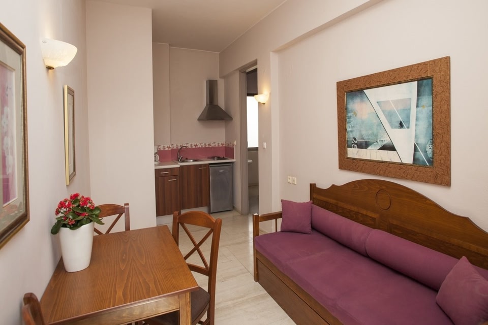Facilities and services include snack bar, TV room and wireless Internet access. Apartments feature air conditioning, TV, wireless Internet access, safe (extra charge), kitchenette, mini fridge, hairdryer, bathroom and balcony/terrace. Note: Reception with limited opening hours. Please advise flight number and estimated arrival time when booking this hotel. Address: 10, Hortatzi Street, 74100 Rethymno, Crete, Greece.
