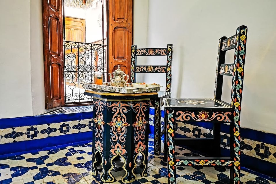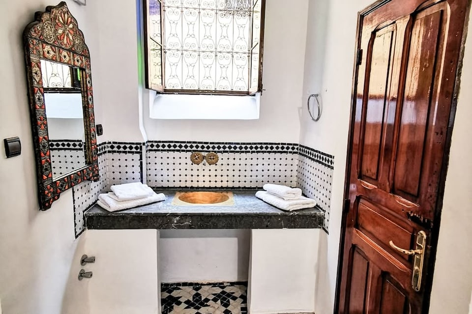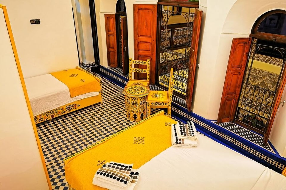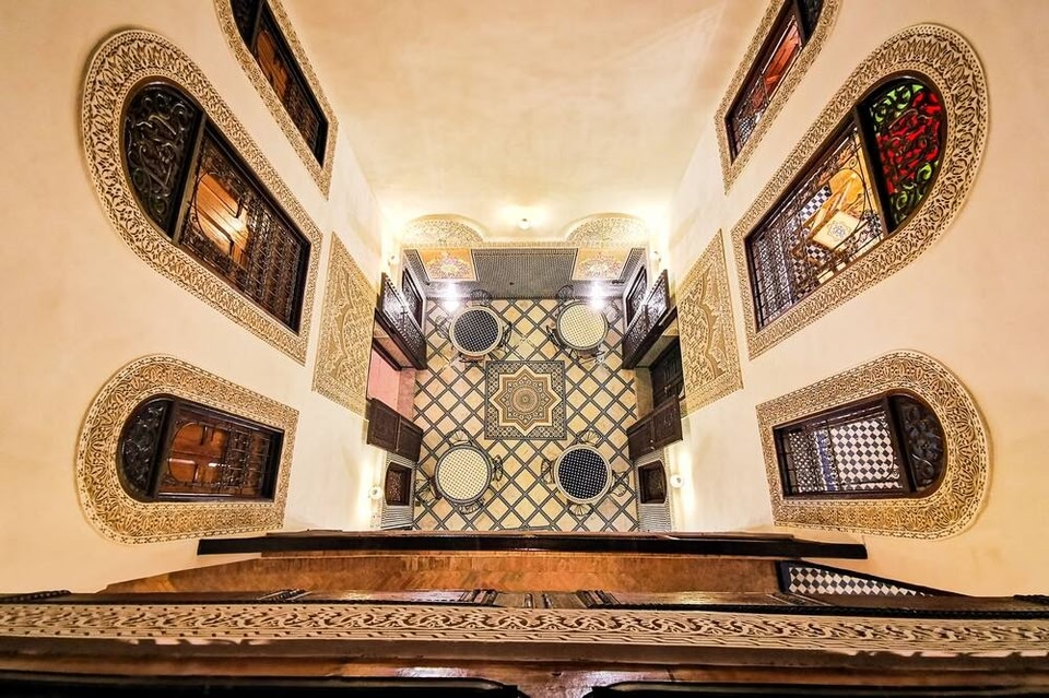 Located just a 2-minute walk from the Medina in Fès, this air-conditioned riad features a rooftop terrace. It offers guest rooms with a traditional Moroccan décor and free Wi-Fi access. The soundproofed guest rooms feature a patio with a view.