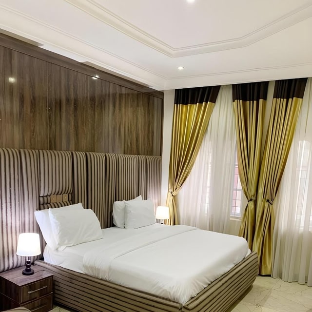 Luxurious AmenitiesApartment550 boasts an outdoor pool, garden, and on-site restaurant. Guests can enjoy room service and unwind at the bar.Modern RoomsWith air-conditioning, flat-screen TV, safety deposit box, and private bathrooms, our rooms offer comfort and convenience.RelaxationIndulge in a hot tub session or opt for a hearty breakfast - including English/Irish and vegetarian options - to start your day right.Book now for an unforgettable stay at Apartment550 in Abuja.