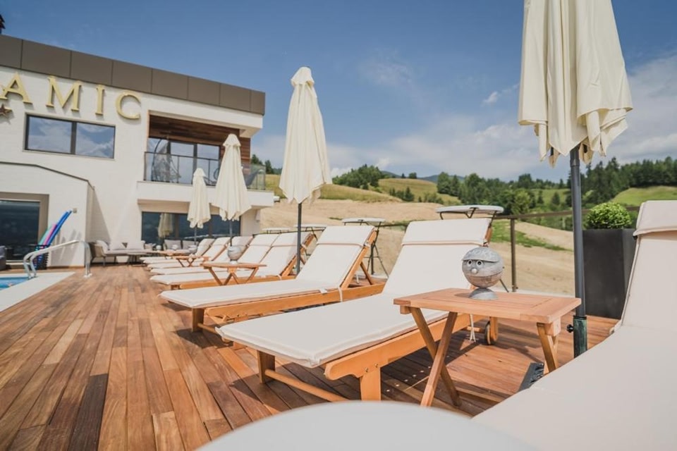 Panoramic Colibita has free bikes, outdoor swimming pool, a garden and shared lounge in Colibiţa. Featuring a restaurant, the property also has a terrace, as well as a sauna and a hot tub.