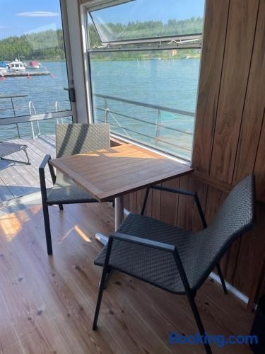 Located in Gamleby in the Kalmar county region, Stay on a houseboat with its own swimming area features a terrace. The holiday home is composed of 1 bedroom, a fully equipped kitchenette, and 1 bathroom. The accommodation is non-smoking.
