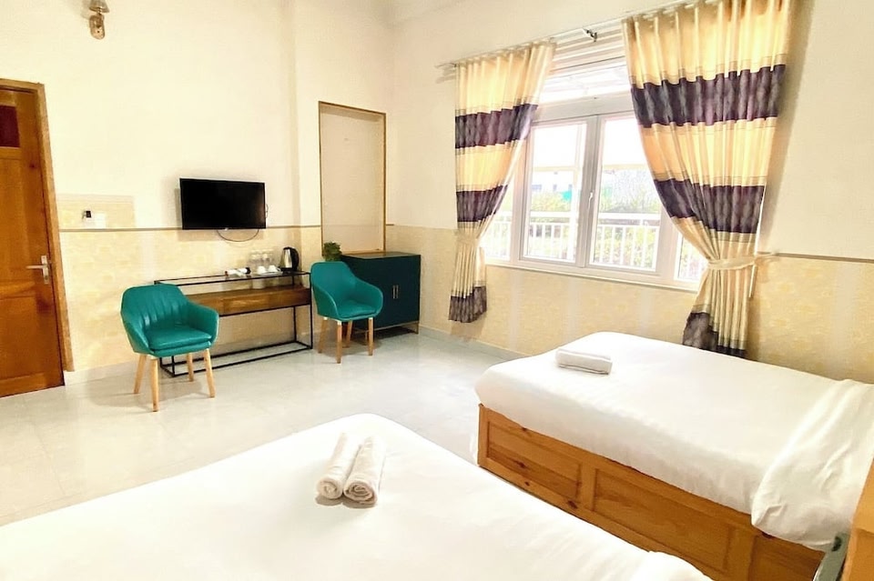 Located in Da Lat, Ruby Peace Hotel is near a train station. Lam Dong Museum and XQ Historical Village are cultural highlights, and some of the area's activities can be experienced at Dalat Cable Car and Dalat Palace Golf Club. Dalat Railway Tunnel and Cau Dat Tea Hill are also worth visiting. Along with dry cleaning, this hotel has laundry facilities and a 24-hour front desk. Free WiFi in public areas and free self parking are also provided. Other amenities include tour/ticket assistance. Ruby Peace Hotel offers 13 accommodations with complimentary bottled water and slippers. Accommodations offer separate sitting areas. 32-inch LCD televisions come with satellite channels. Bathrooms include showers, complimentary toiletries, and hair dryers. Guests can surf the web using the complimentary wireless Internet access (speed: 100+ Mbps (good for 1–2 people or up to 6 devices)). Business-friendly amenities include desks, desk chairs, and printers. Housekeeping is offered daily and irons/ironing boards can be requested.